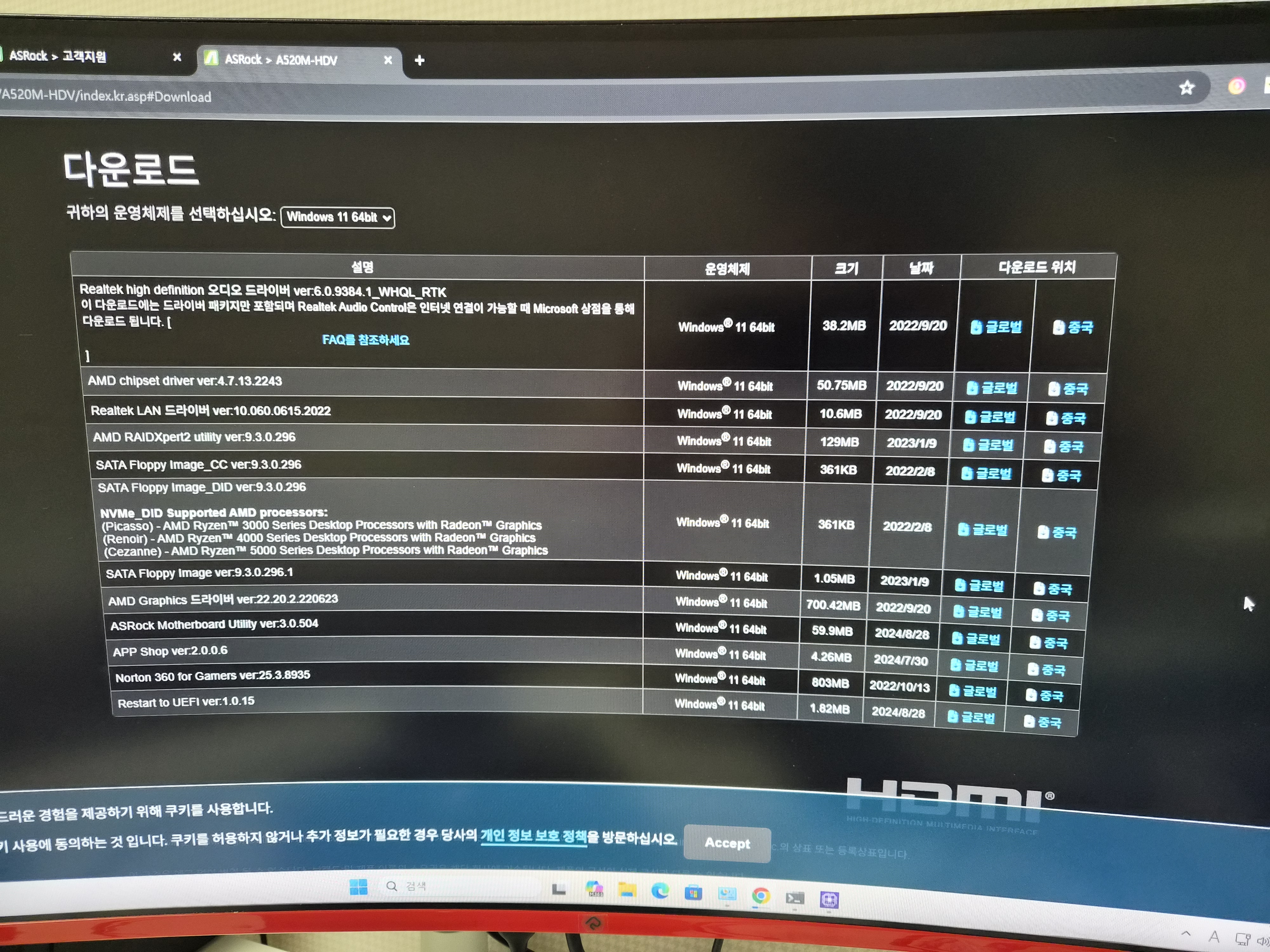 윈도우 11 25H2로 클린 설치하고 메인보드 드라이버를 설치하여 잡아 준다음