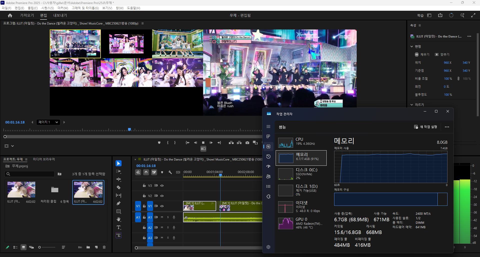 프리미어 프로에서 멀티캠으로 영상편집이 가능할까 싶었는데 메모리 용량이 부족해서인지