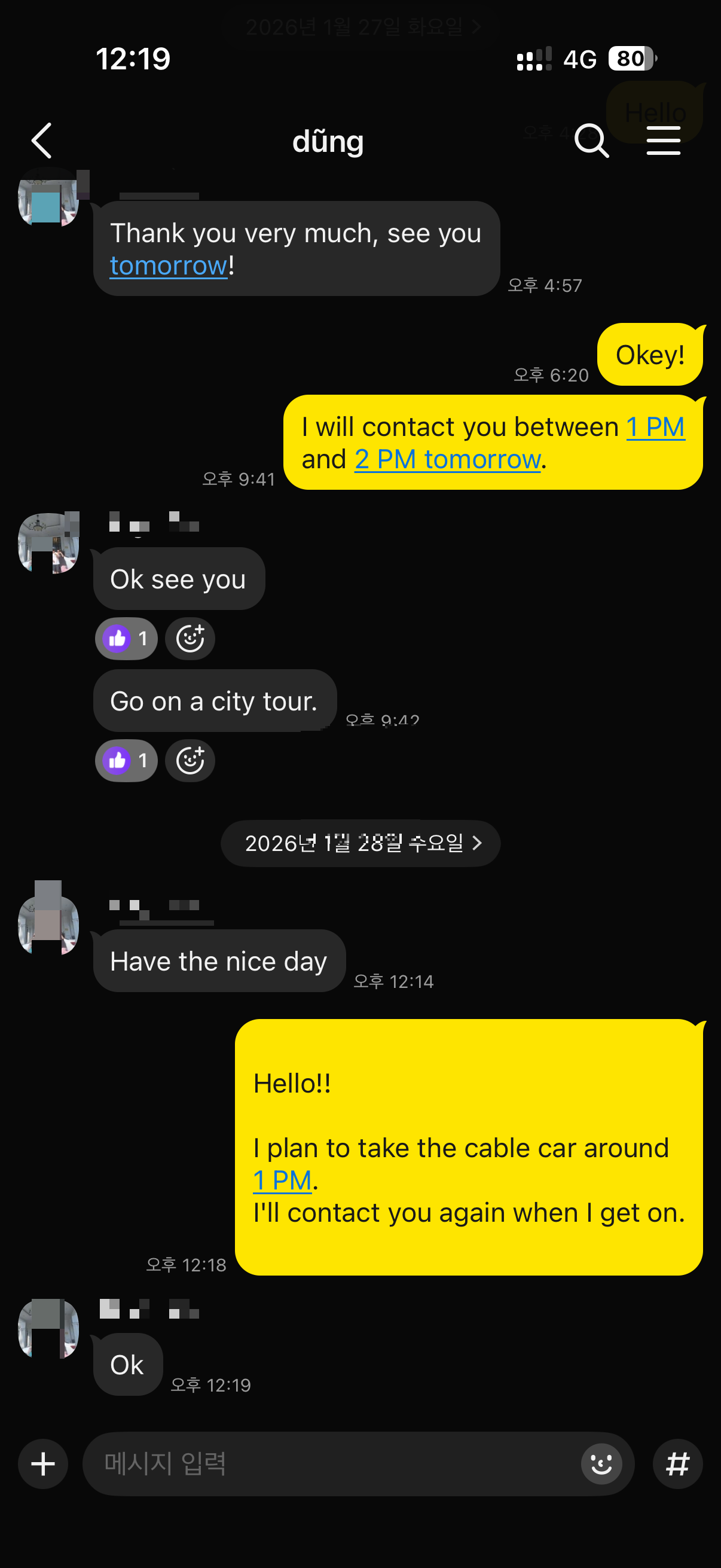 그래서 구글 번역을 이용하는데요 양쪽에서 구글 번역을 이용하니까 생각보다 불편함 없이 말이 잘 통했습니다.