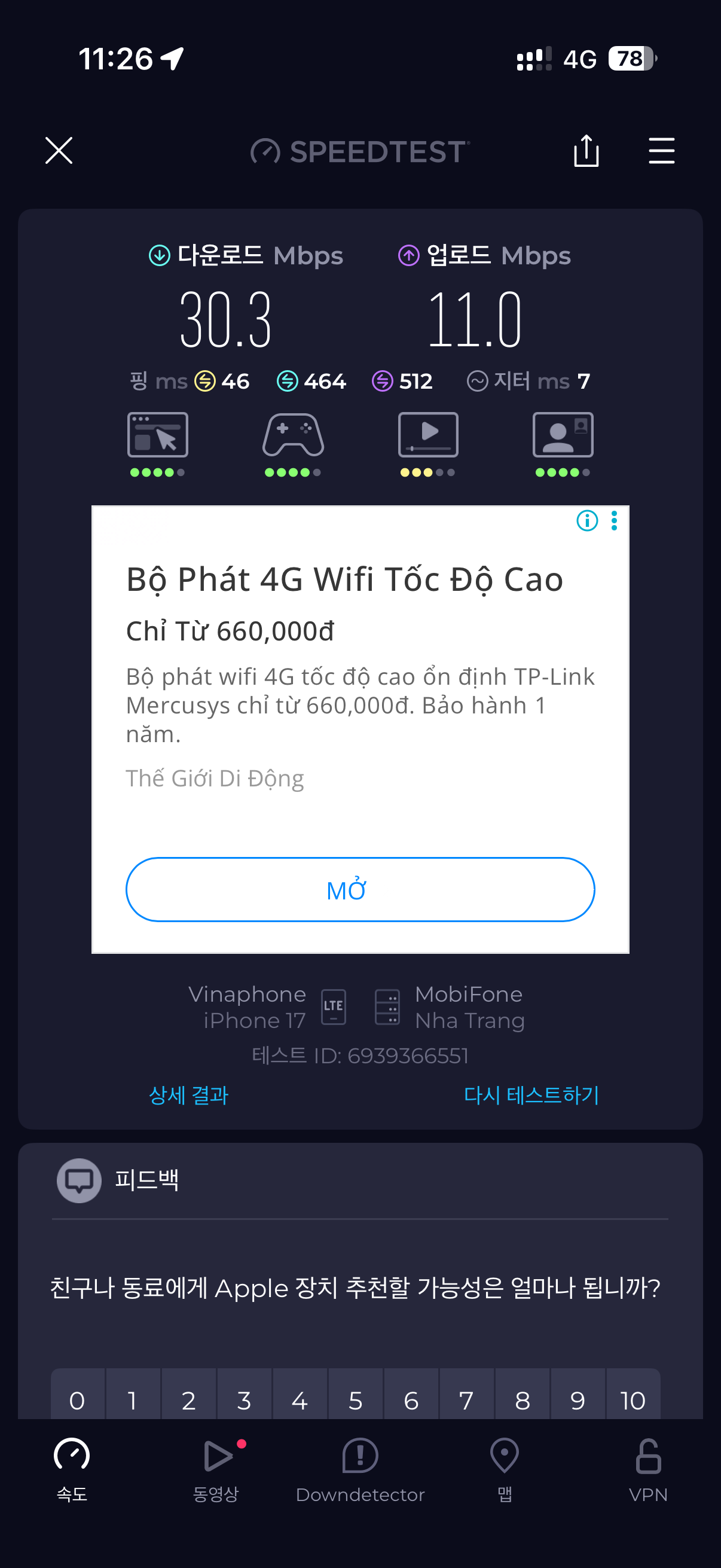 속도 측정 해봤는데 속도가 30 MBbps입니다.