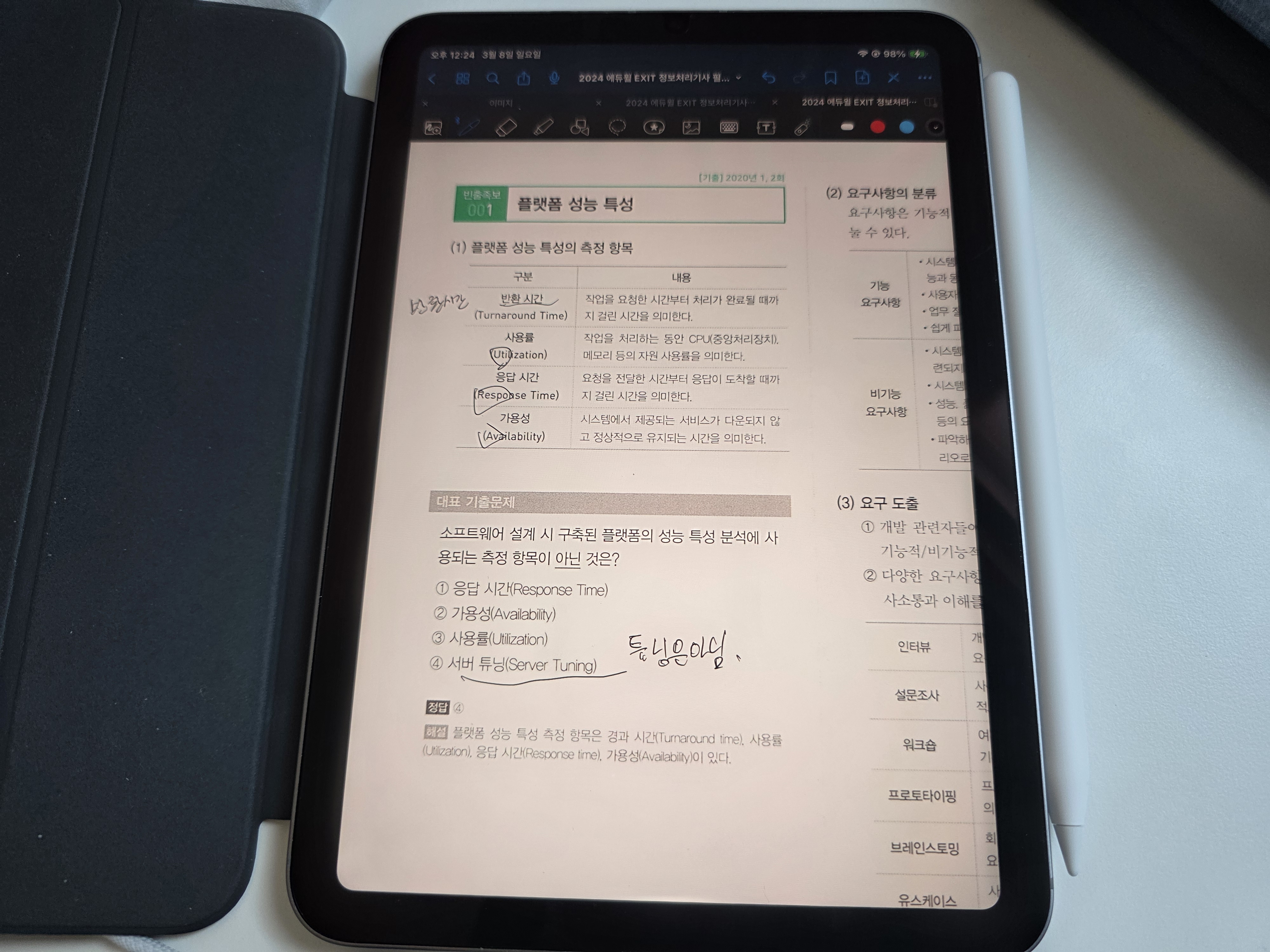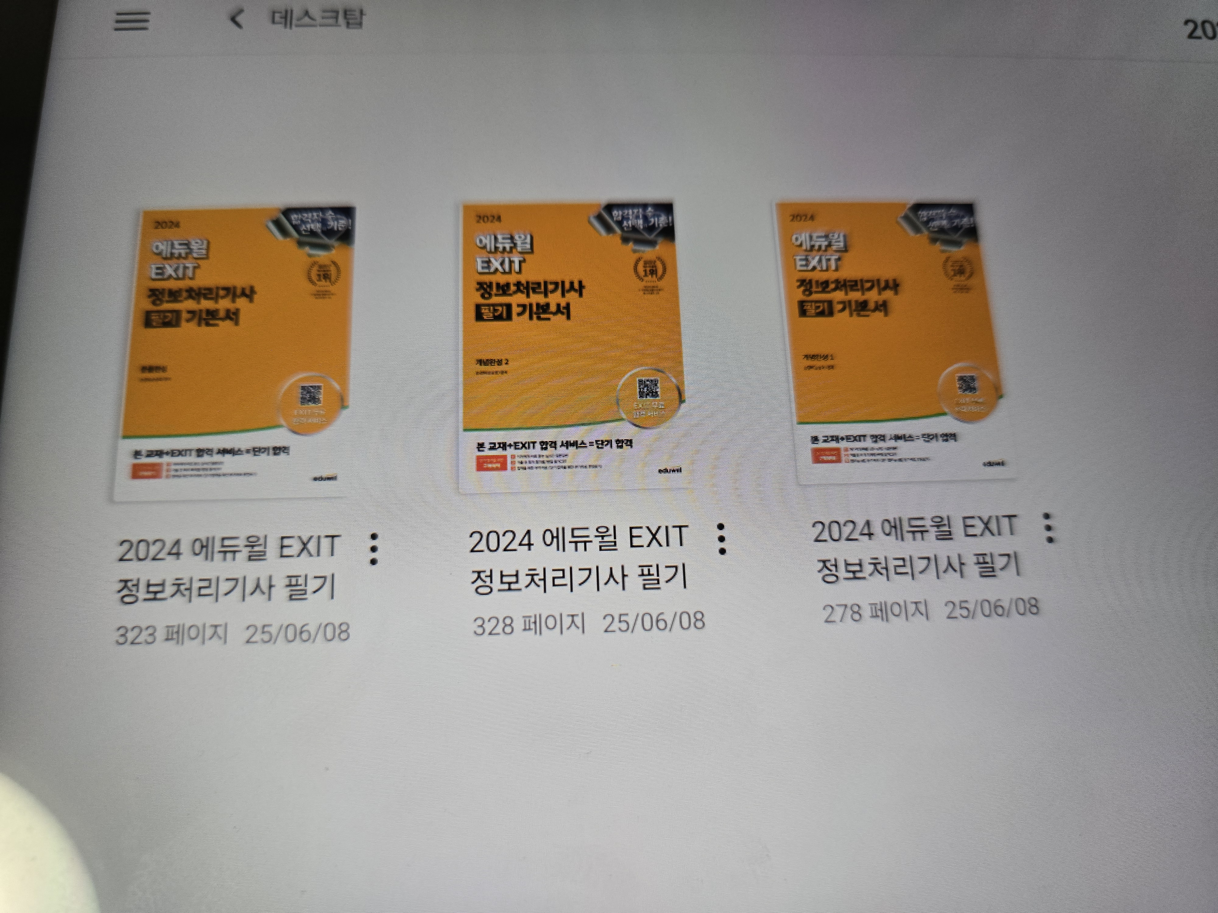 북스캔을 의뢰하여 링제본까지 하여 PDF로 태블릿에 넣어서 자격증 공부를 해보고자 했습니다.
