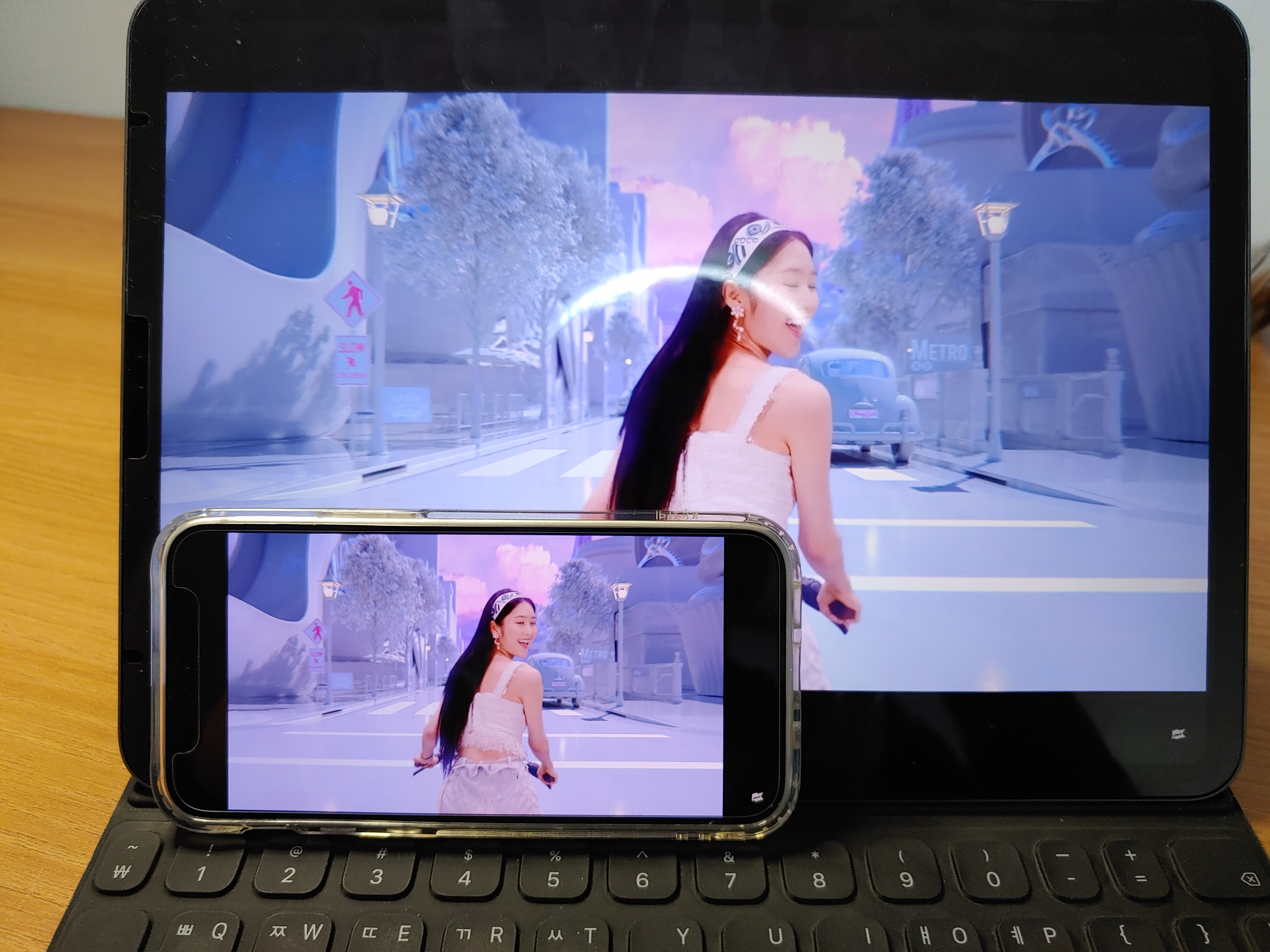 아이폰 12 미니가 아주 조금 더 밝고 선명하게 보였습니다.