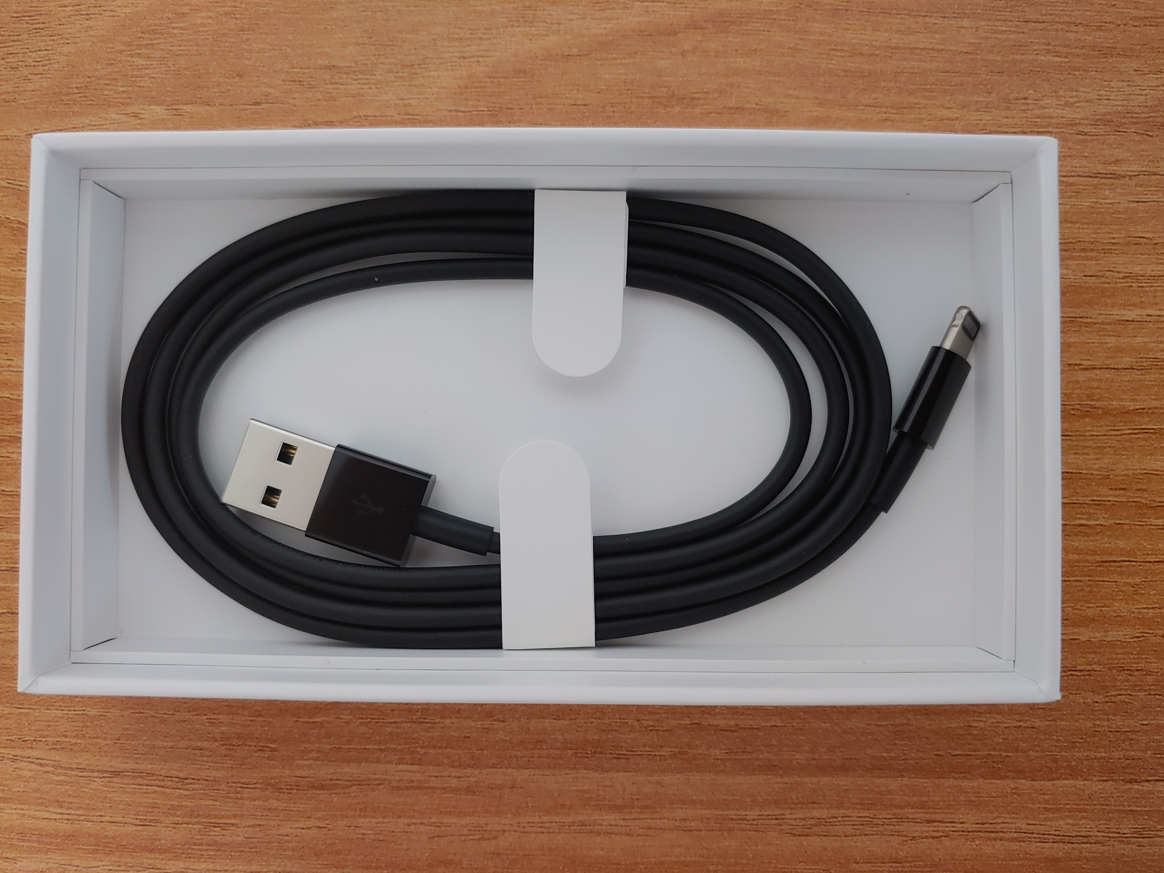 그 아래에는 검은색 라이트닝 케이블이 있습니다.