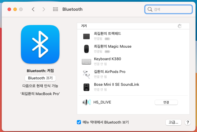 애플 매직 마우스는 별도의 페어링 버튼이 없어