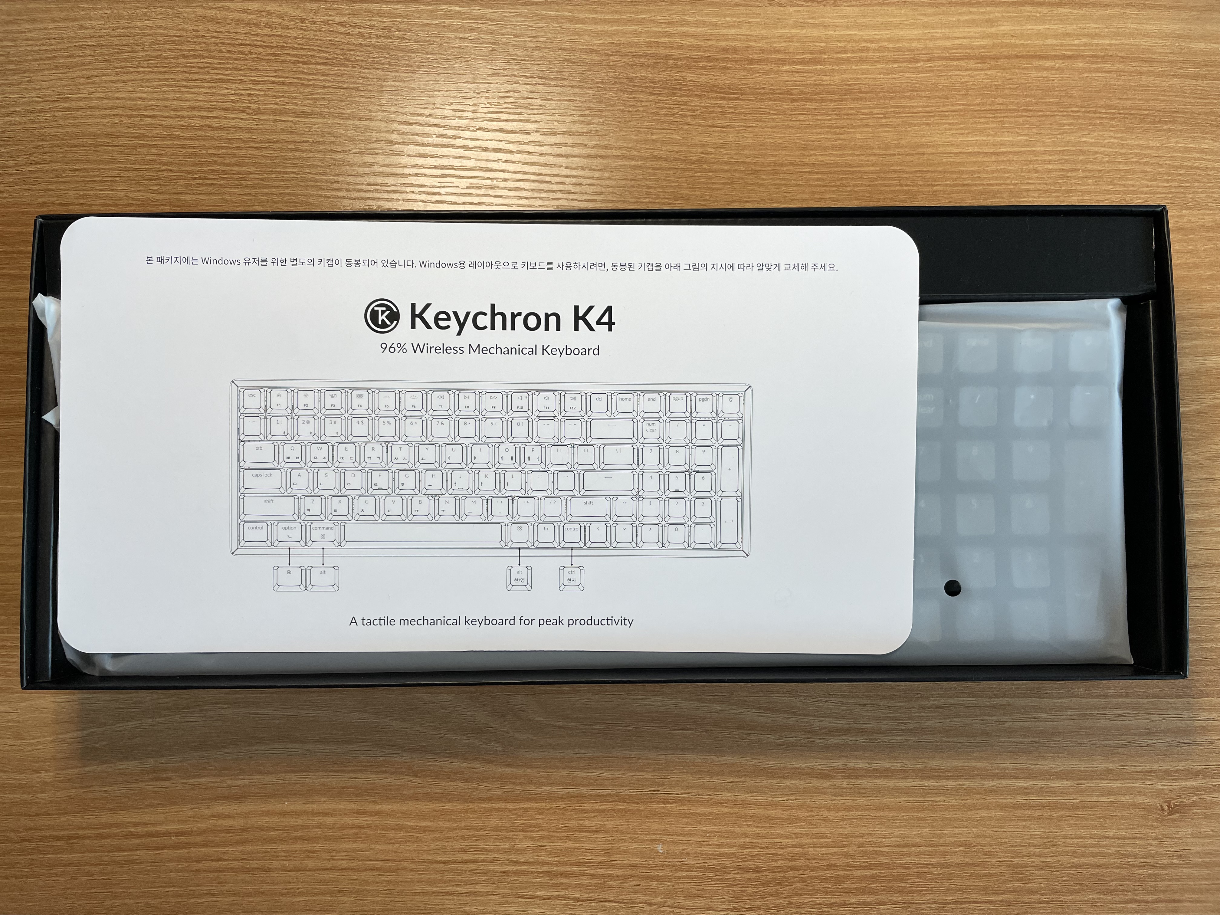 유선 충전 케이블, 키캡 리무버, 축 리무버, 윈도 사용자용 키, 설명서가 있습니다.