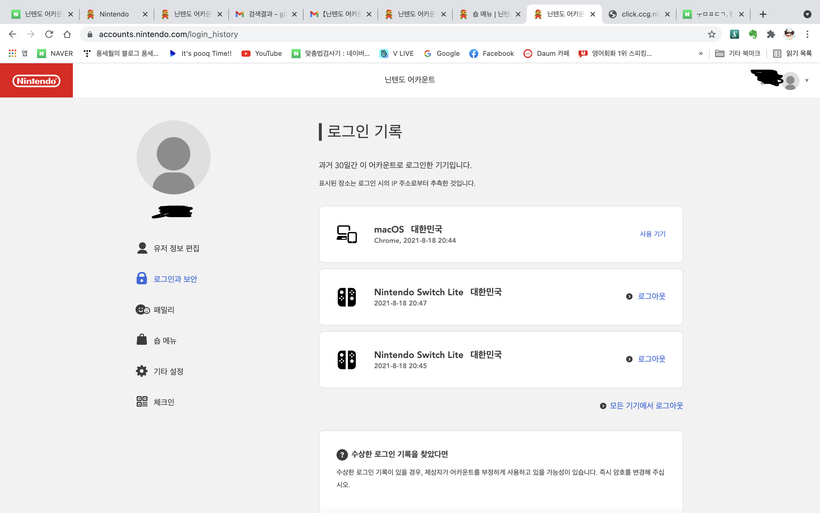 로그인 기록을 보면 30일 동안 로그인 한 기록이 없고