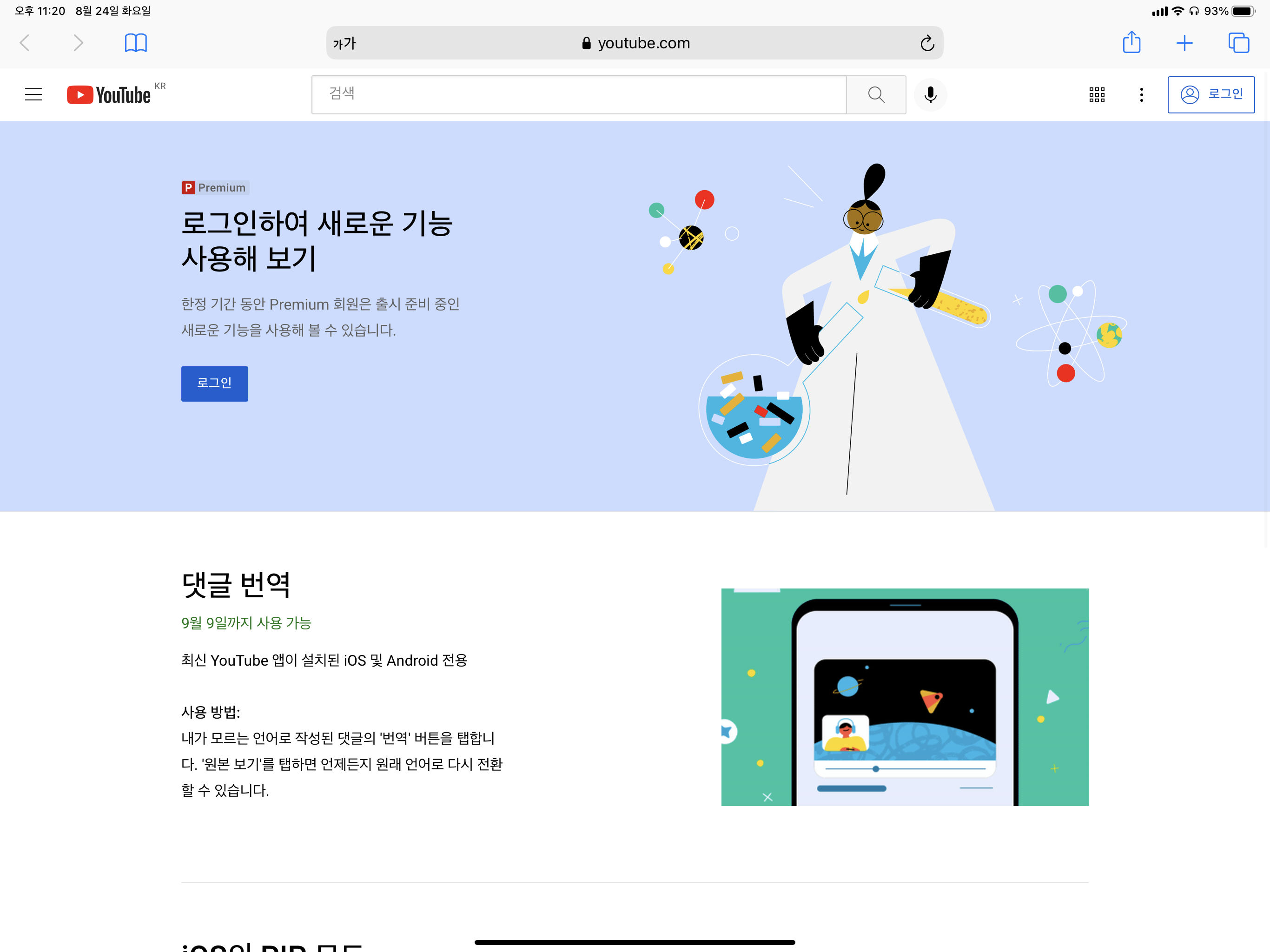 아이폰, 아이패드에서는 유튜브 PIP 기능이 불가능했는데