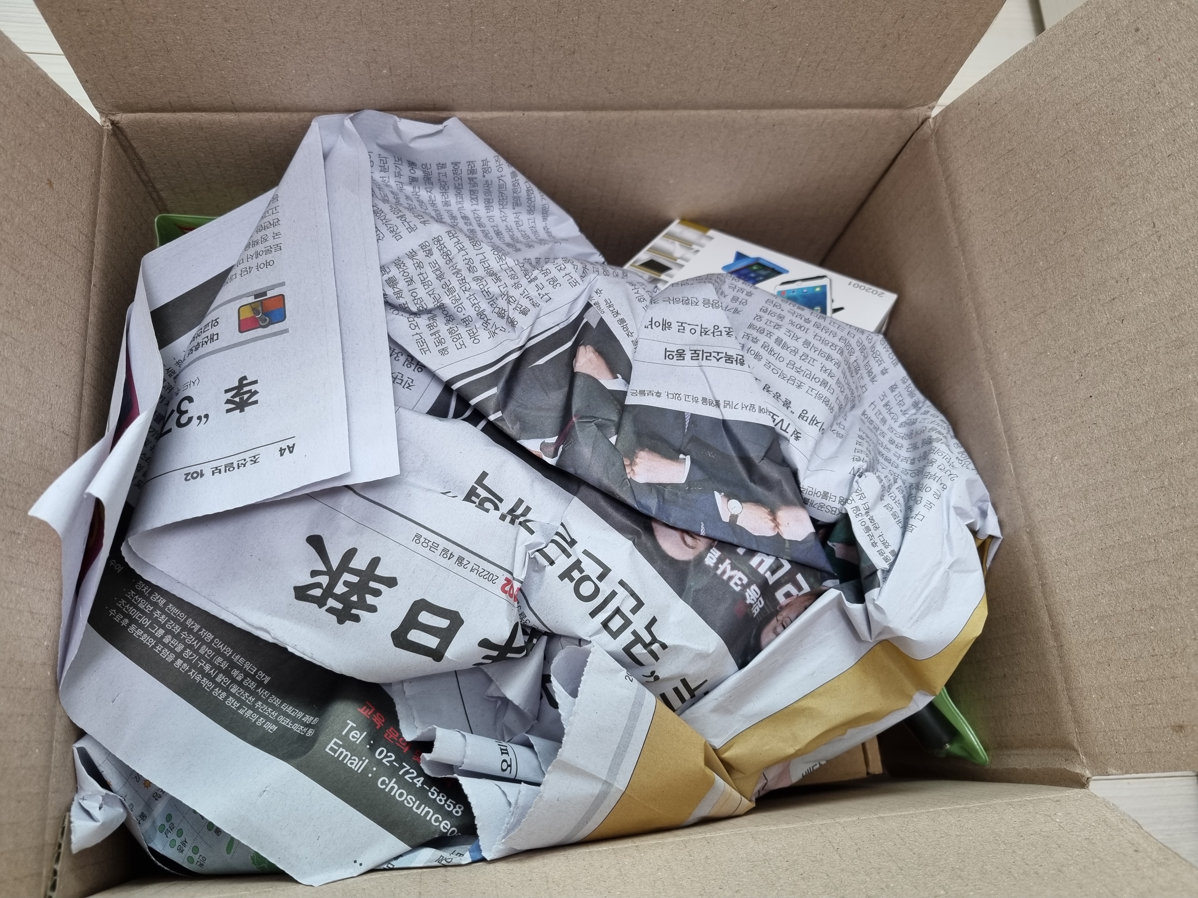 에어캡 대신에 신문지에 싸서 주셨습니다.
