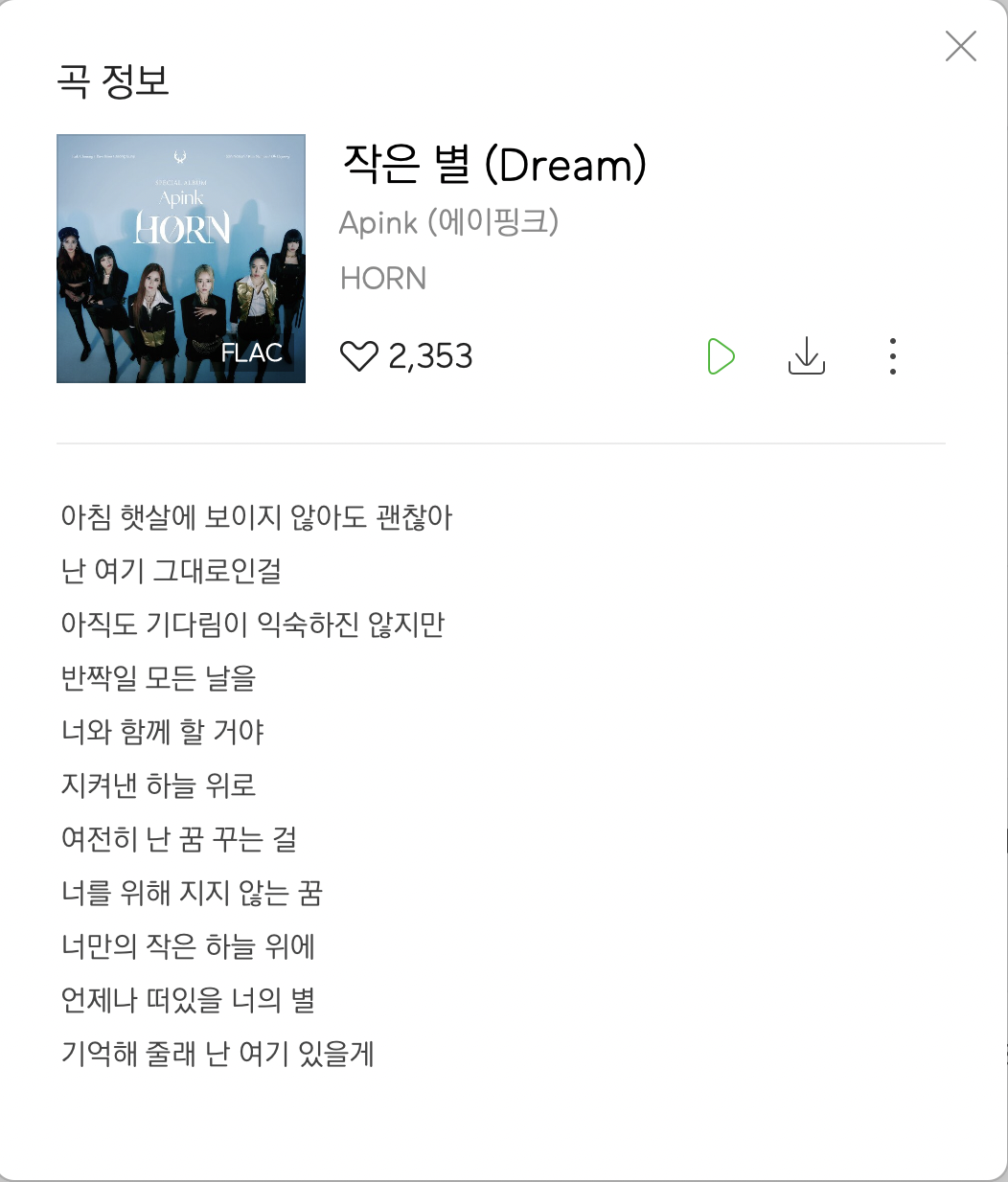 작은 별 (Dream)의 노래 가사입니다.