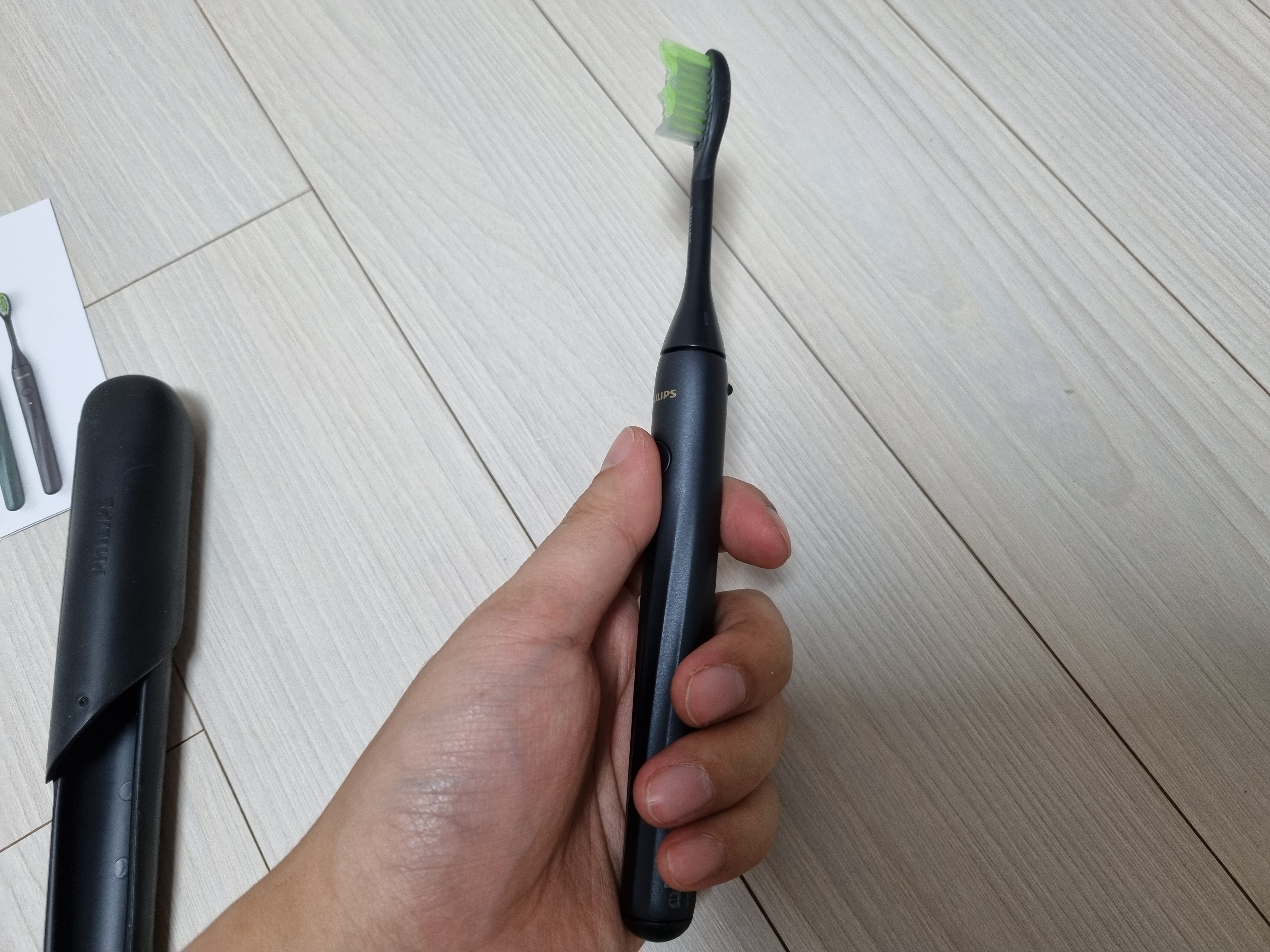 이렇게 가볍게 손에 쥐고 양치할 수 있습니다.