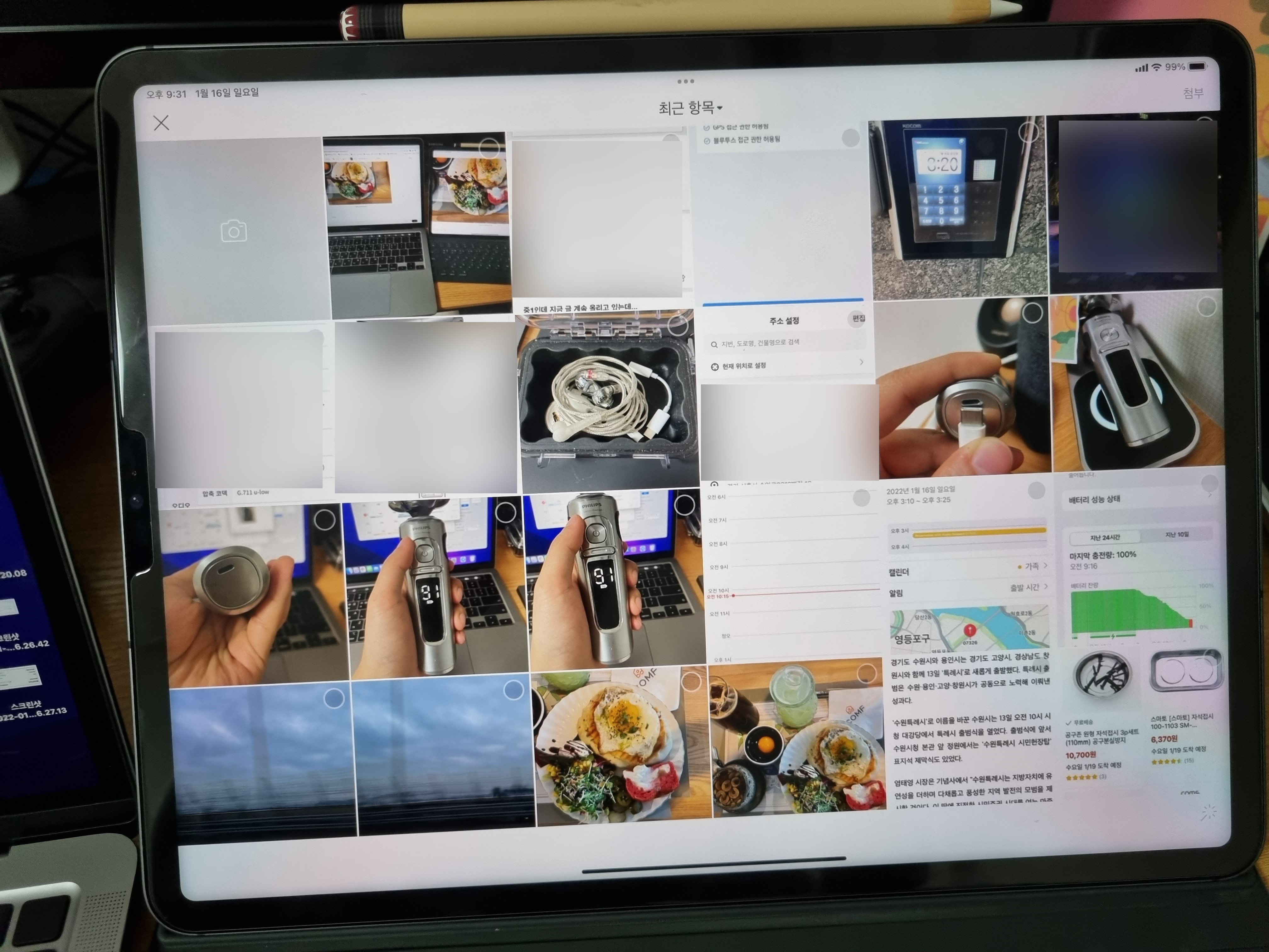 테블릿으로 작업할 경우 촬영한 사진들을