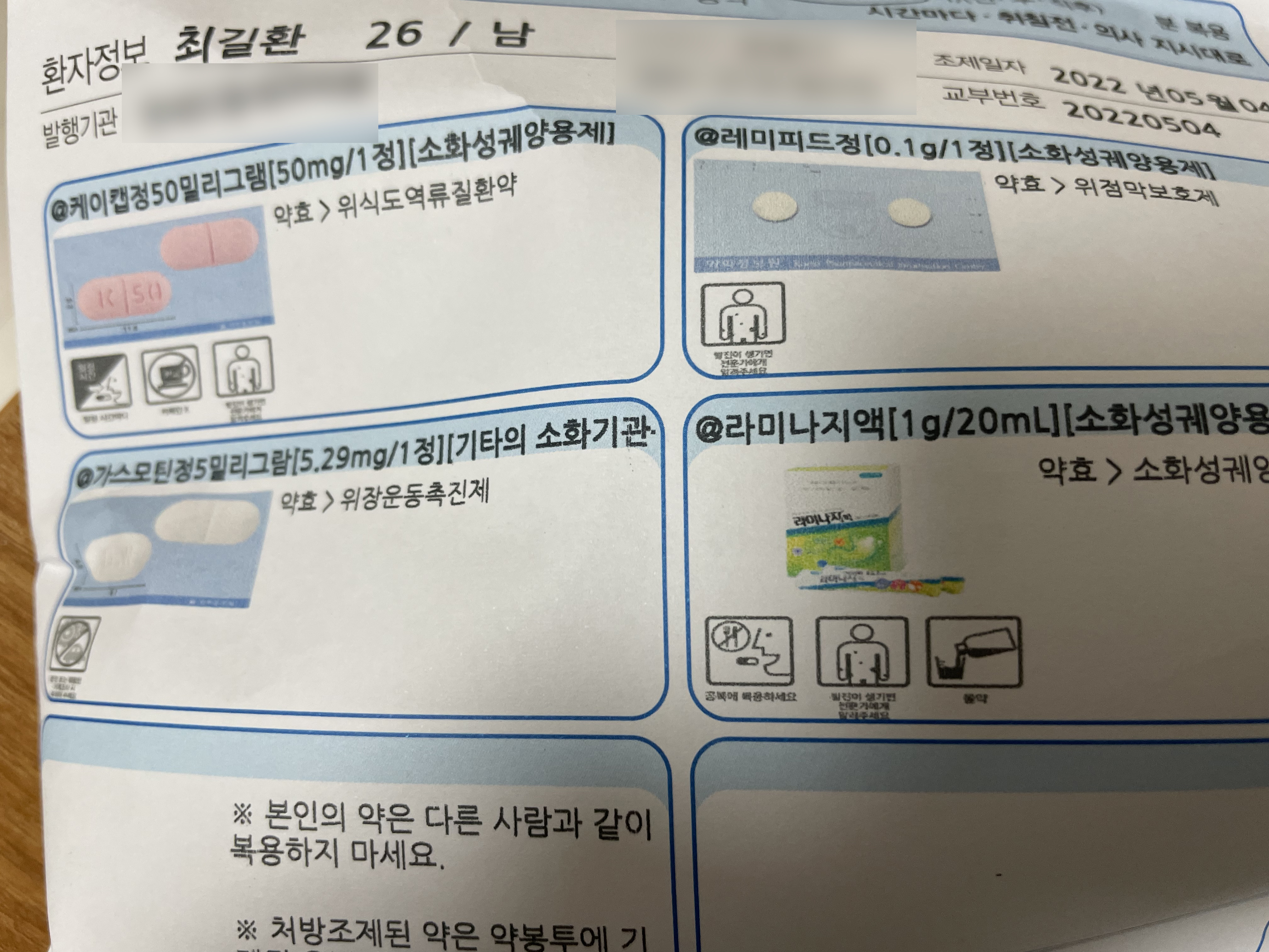 연휴가 있으니 5일 치 약을 처방받았습니다.