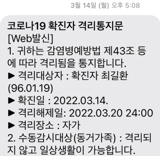 회사 직원 중 한 분이 코로나에 걸러서
