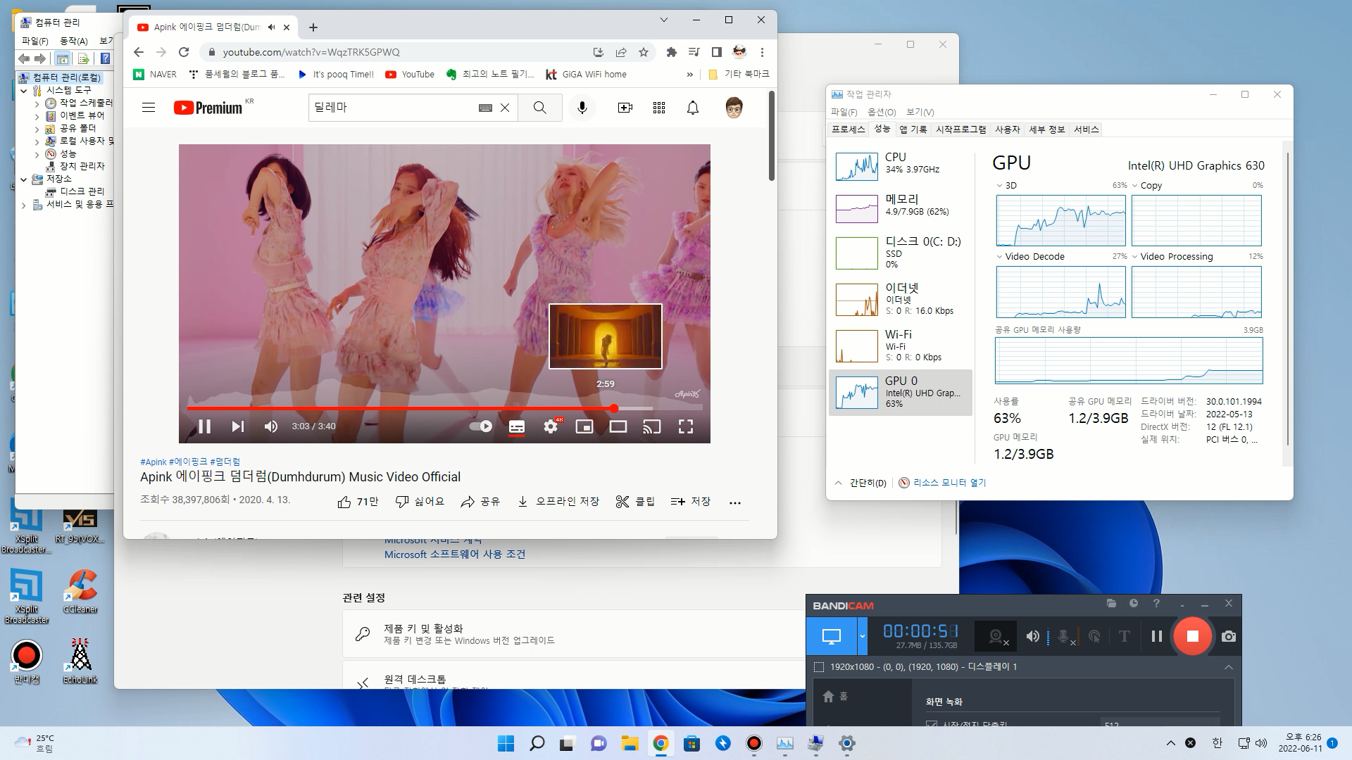 반디캠 고화질 녹화를 하면서