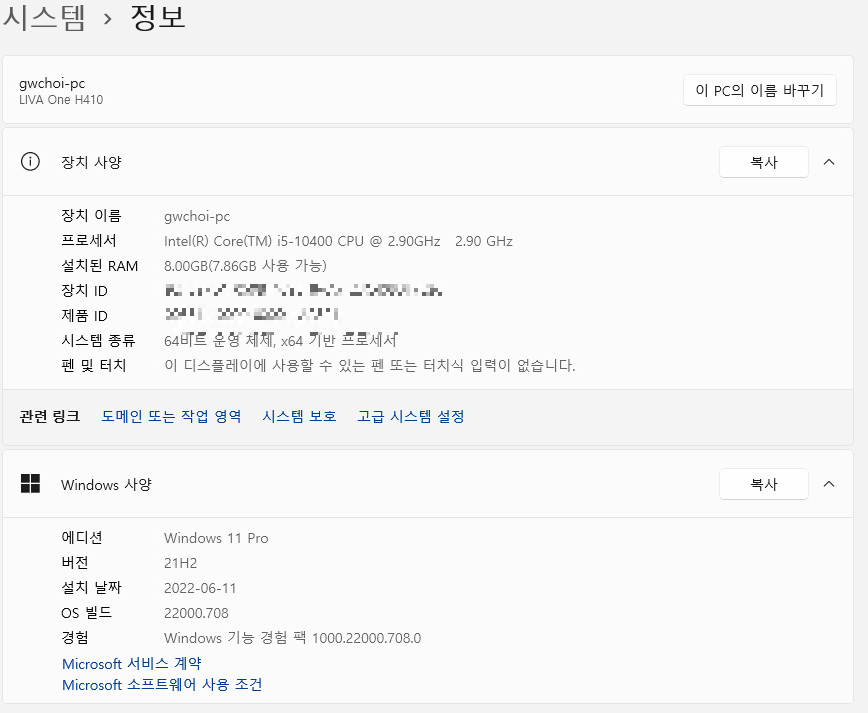 윈도우11로 설치하여 셋팅을 해주었습니다.