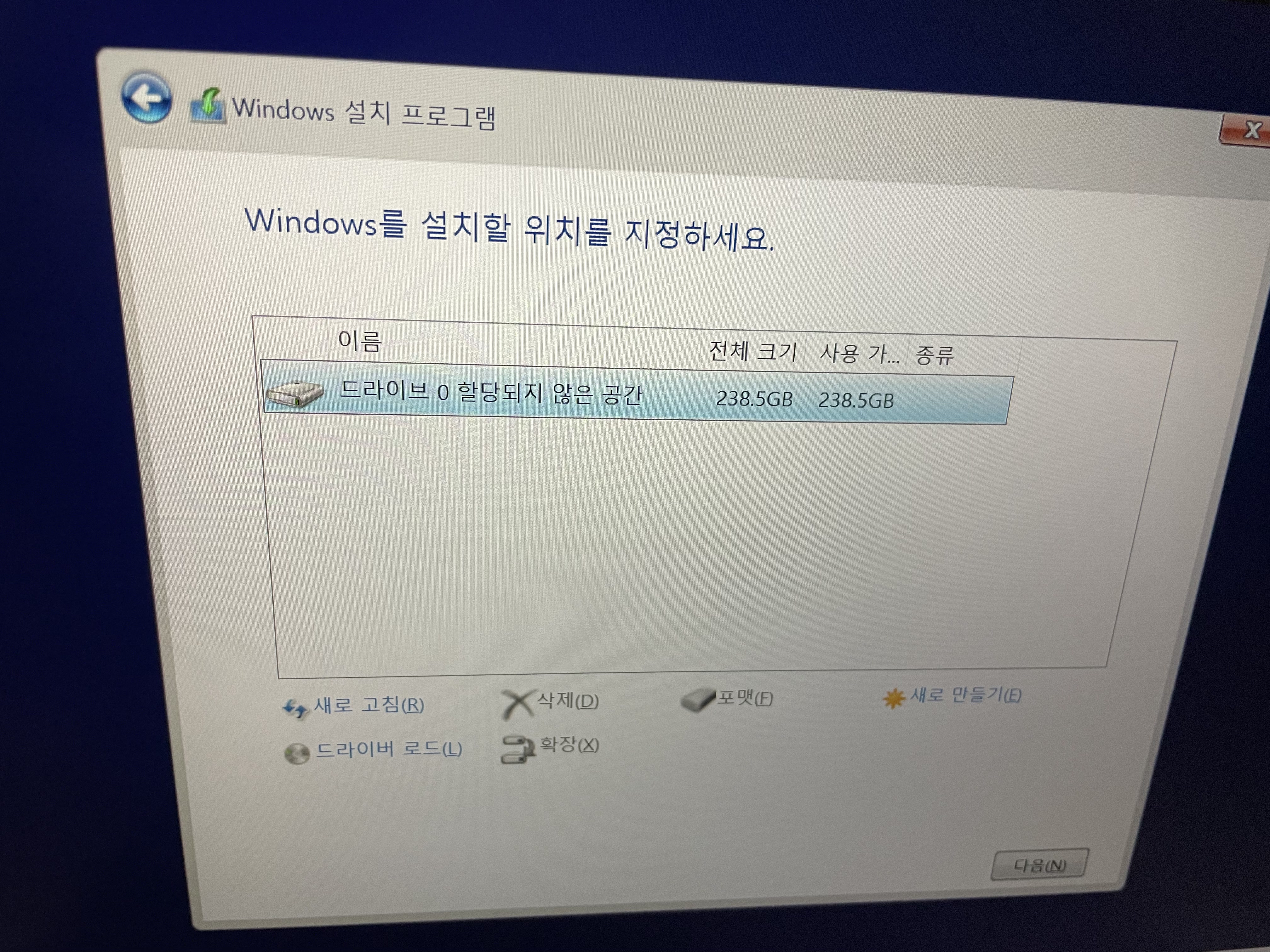 윈도우 10은 여기서 드라이브가 뜨지 않을 겁니다.