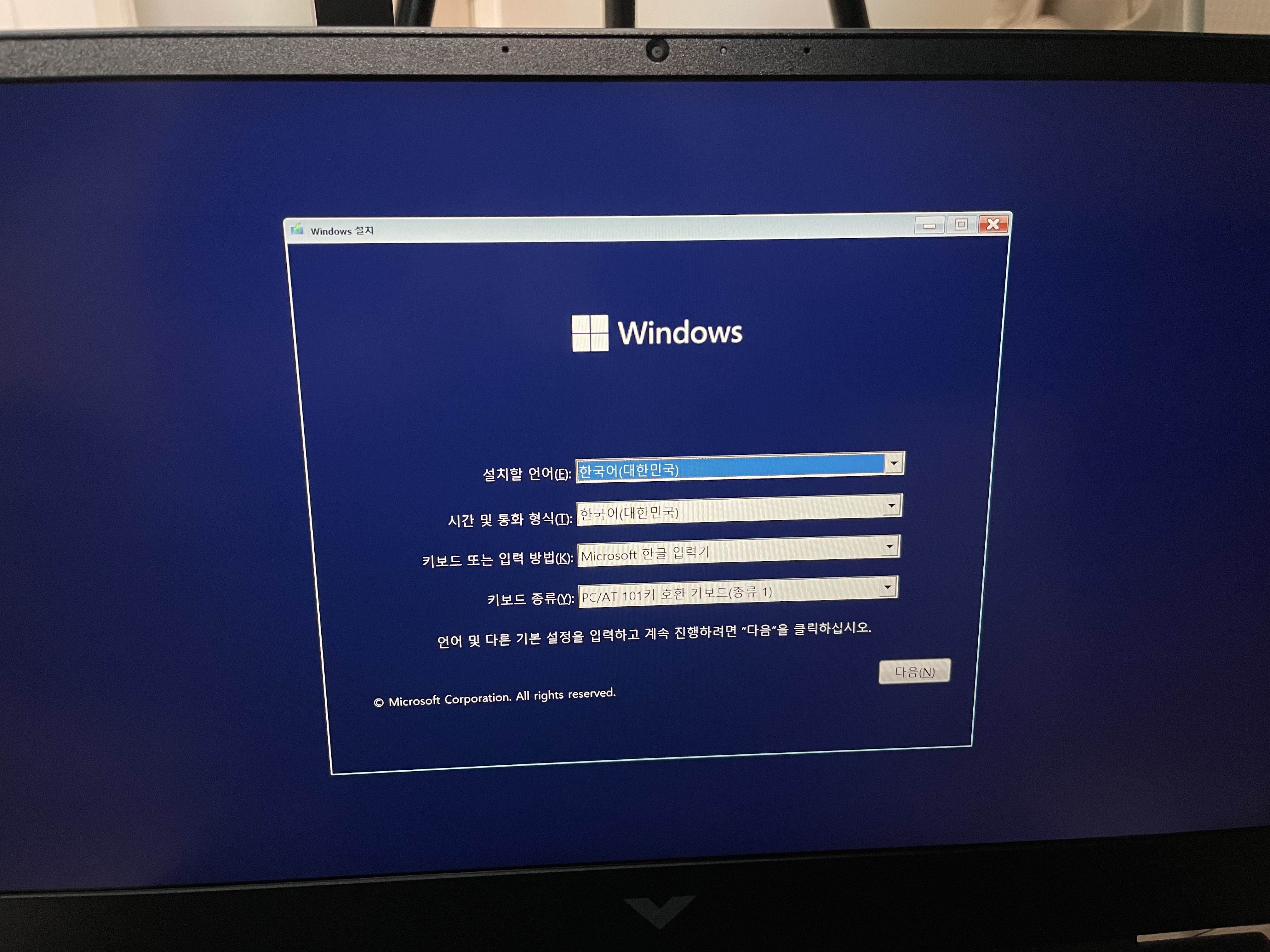 전원을 켜보니 VICTUS 로고가 뜹니다.