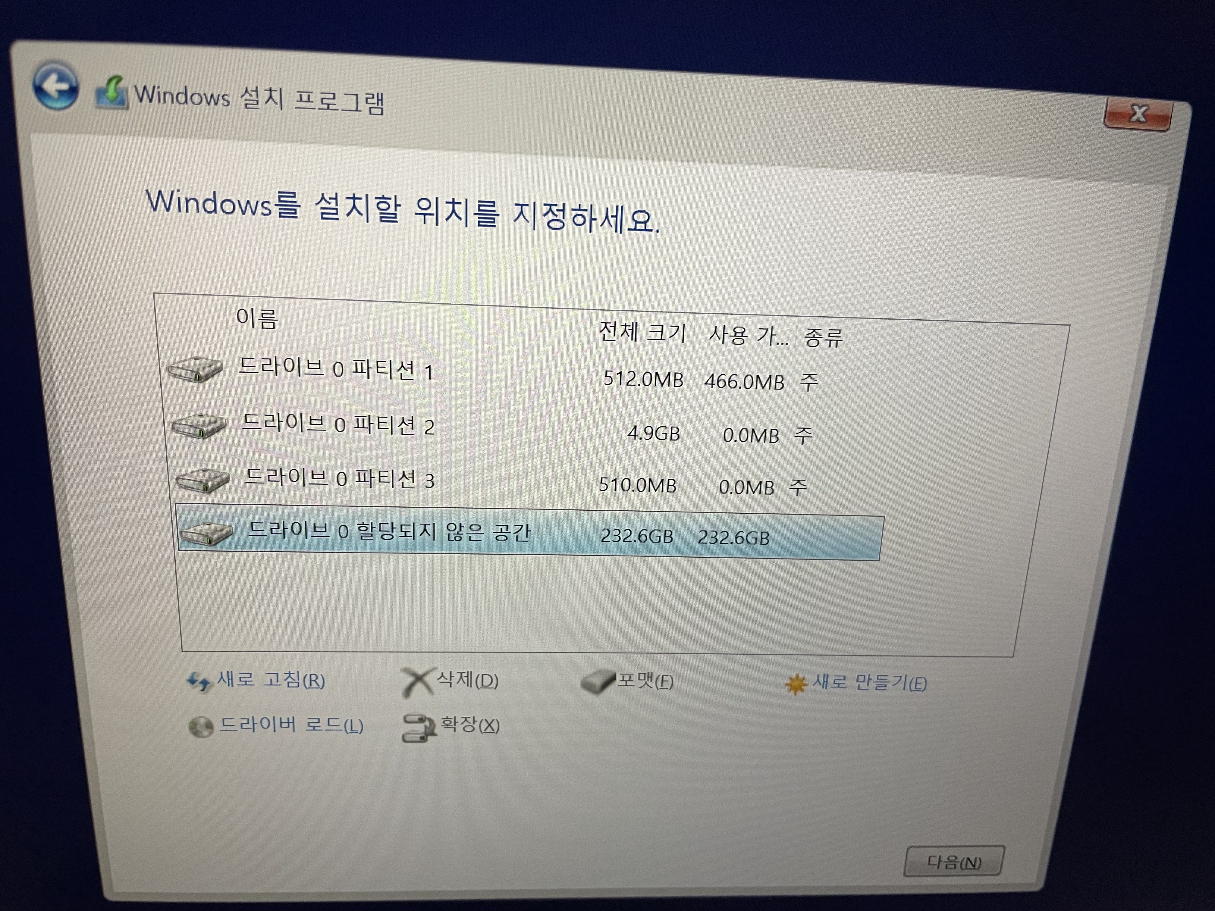 윈도우 10은 여기서 드라이브가 뜨지 않을 겁니다.