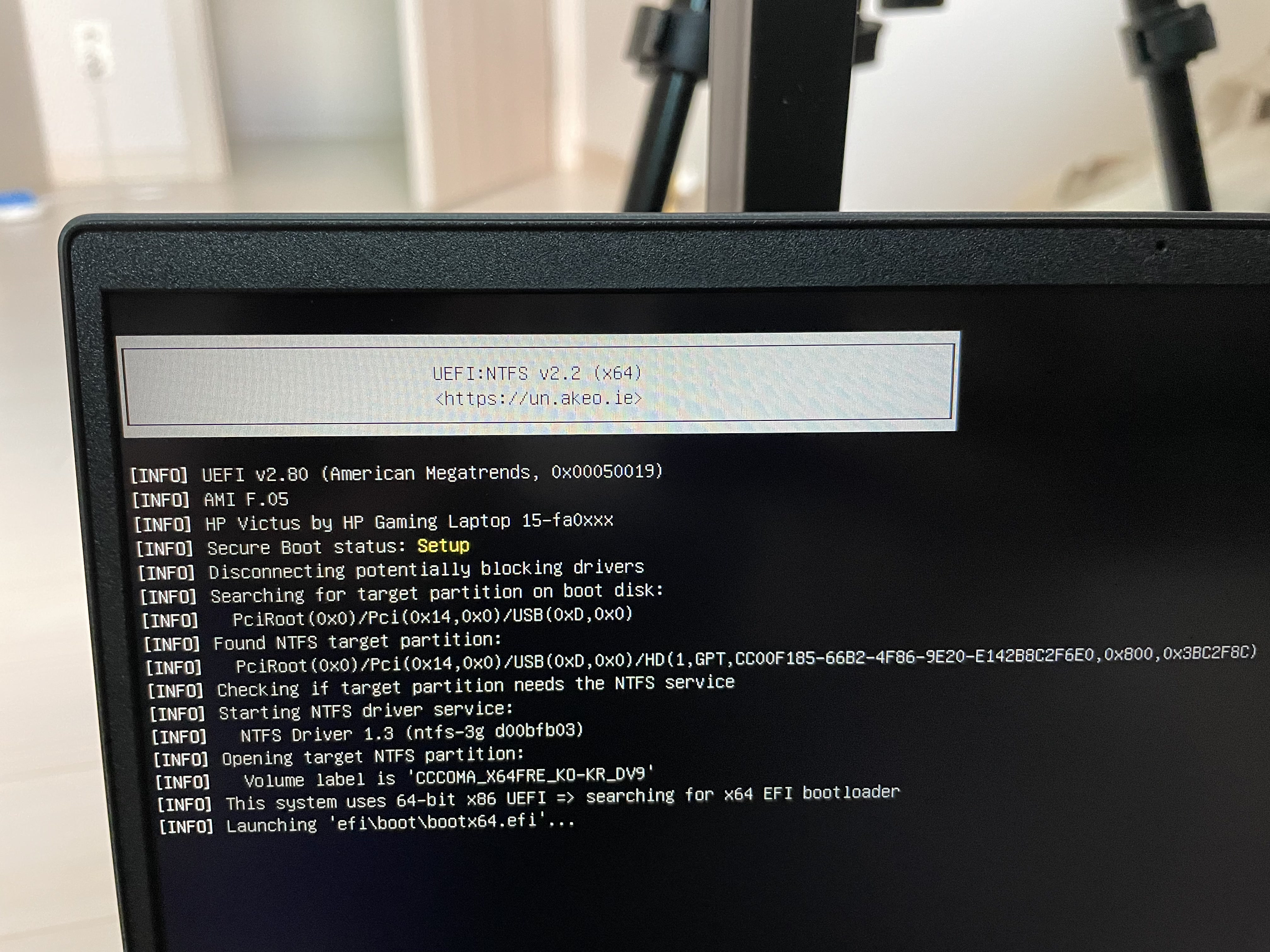 전원을 켜보니 VICTUS 로고가 뜹니다.