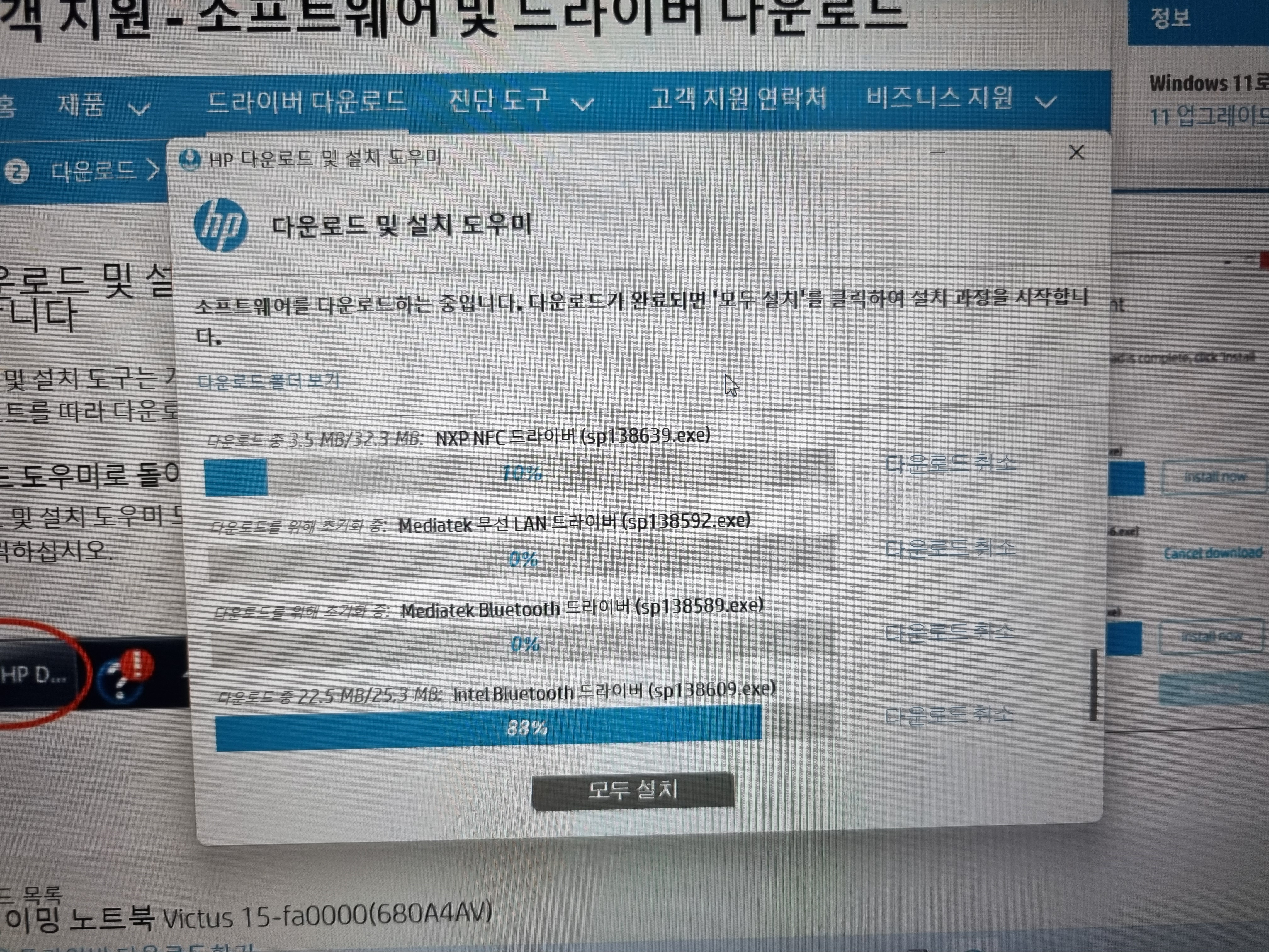 몇 번 재부팅 후 업데이트 확인을 해줘야 합니다.