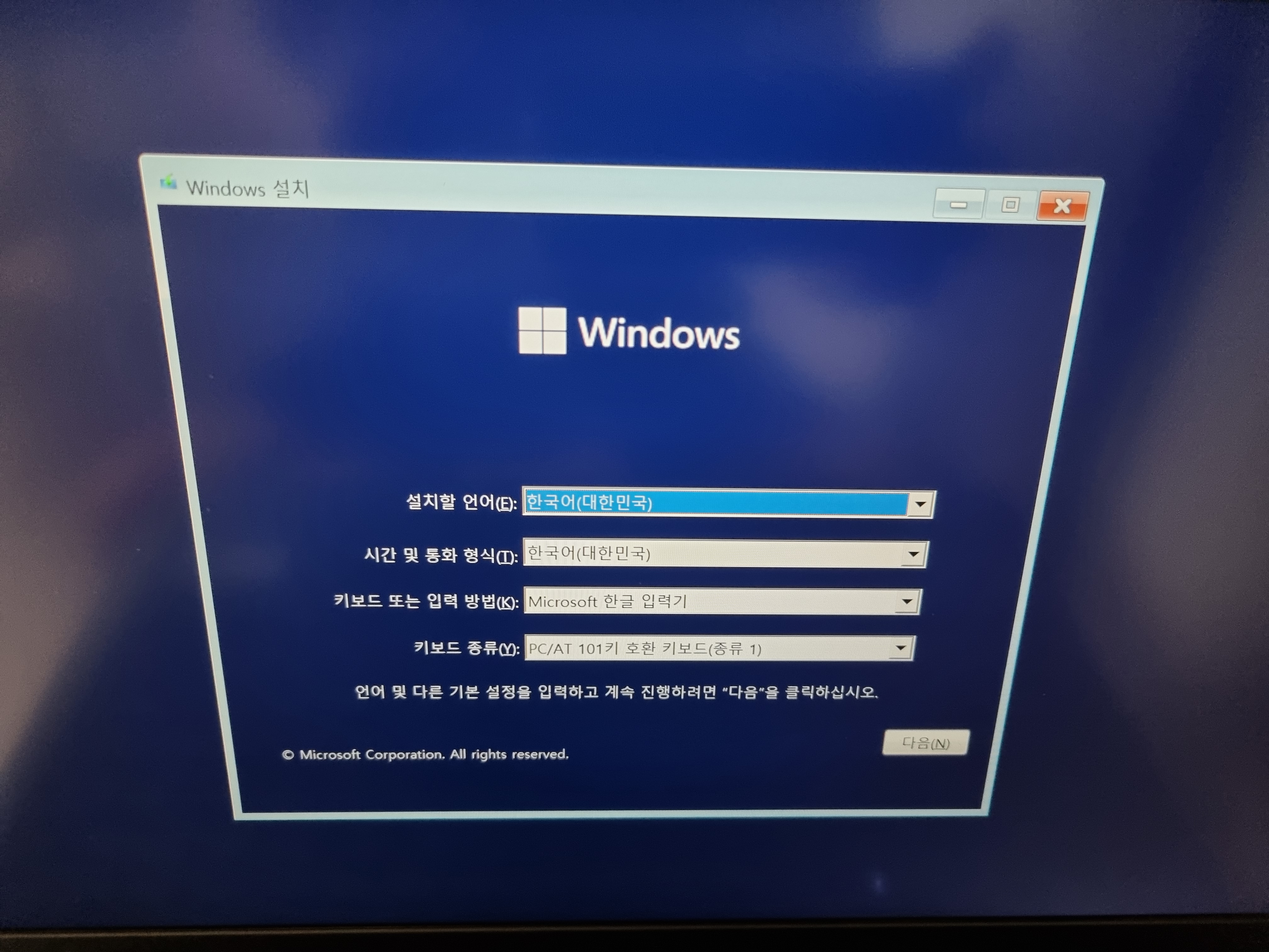 윈도우 버전을 선택하는 화면 없이