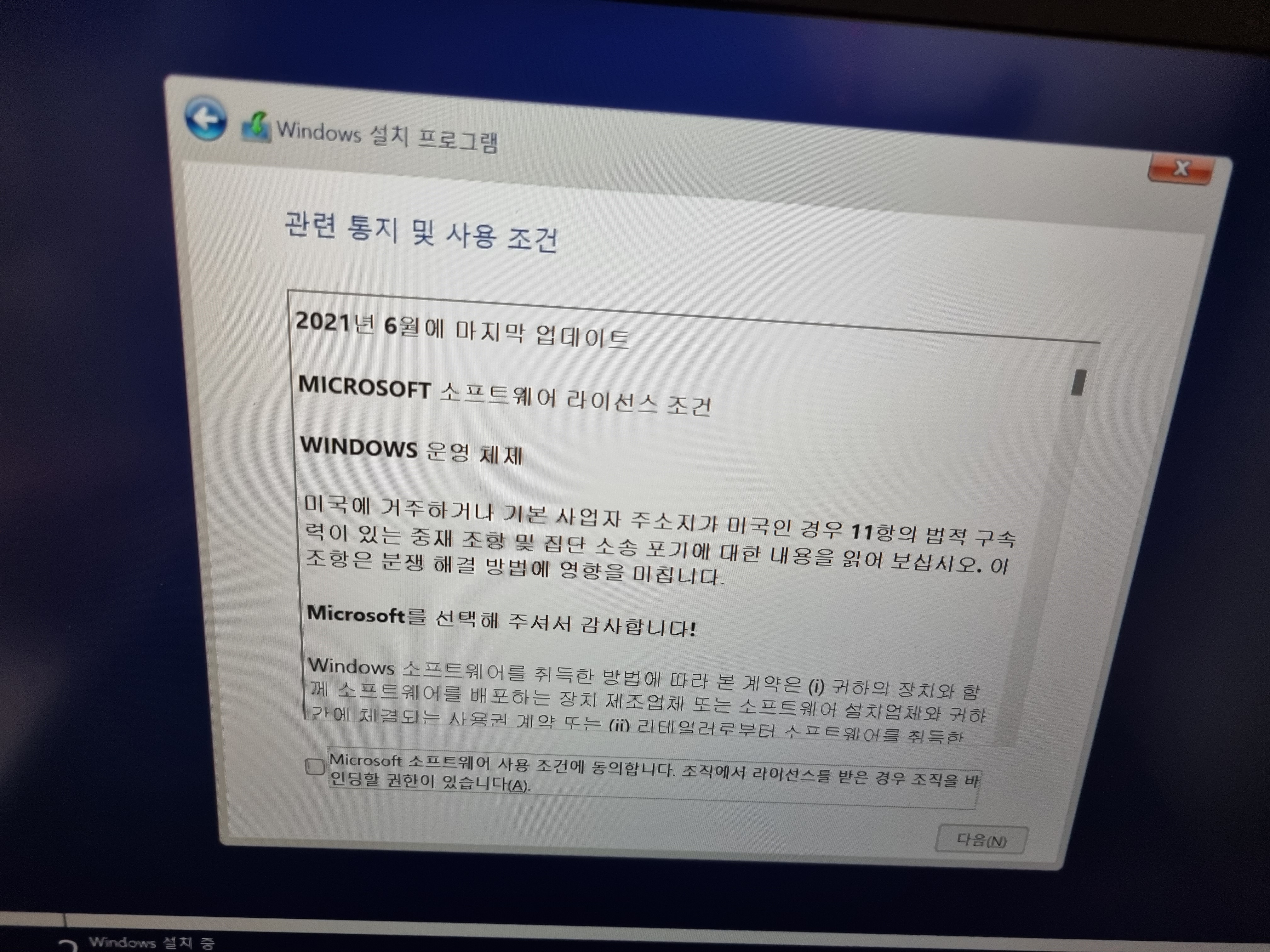 윈도우11 설치 화면입니다.