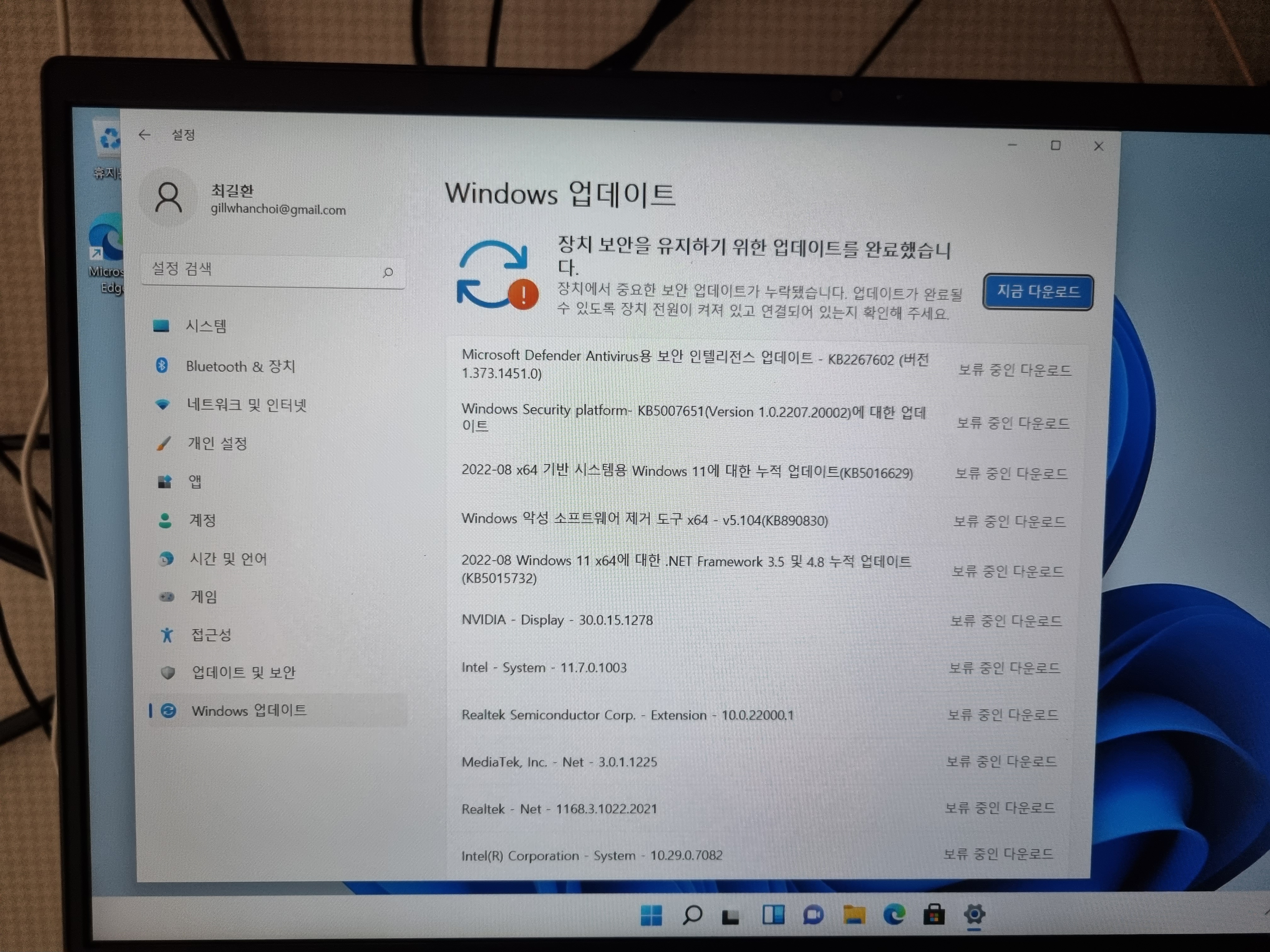 지금 다운로드를 하여 윈도우 업데이트를 해줍니다.