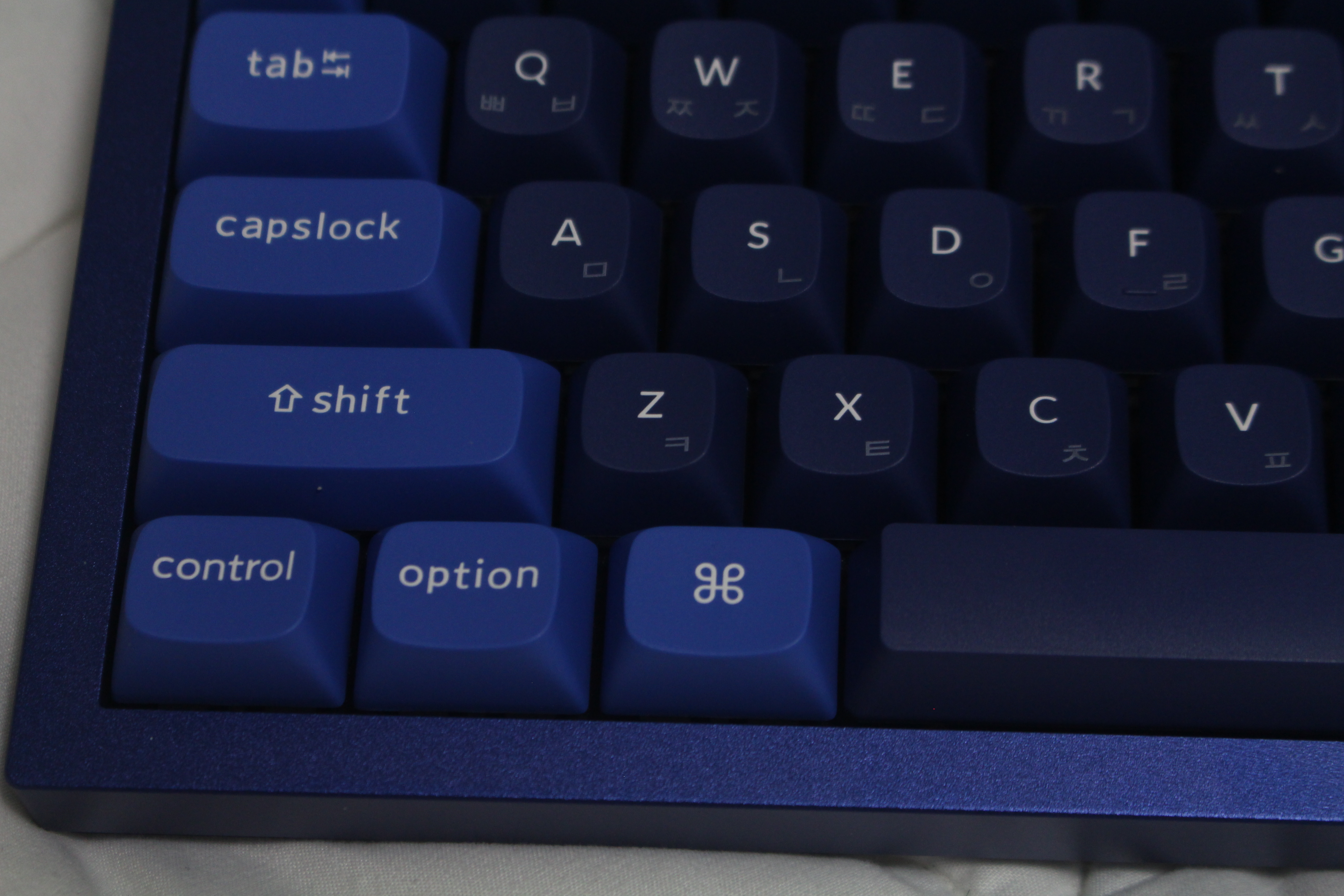 색감이 좀 더 진한 느낌이었고 불투명한 키캡 때문인 지는 몰라도