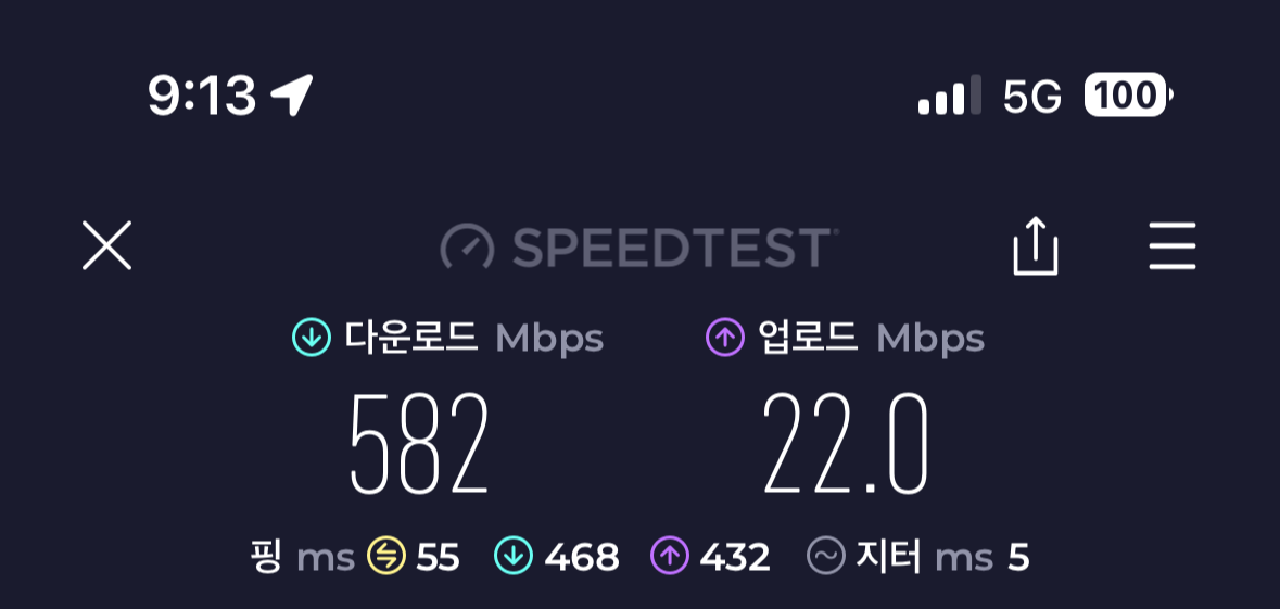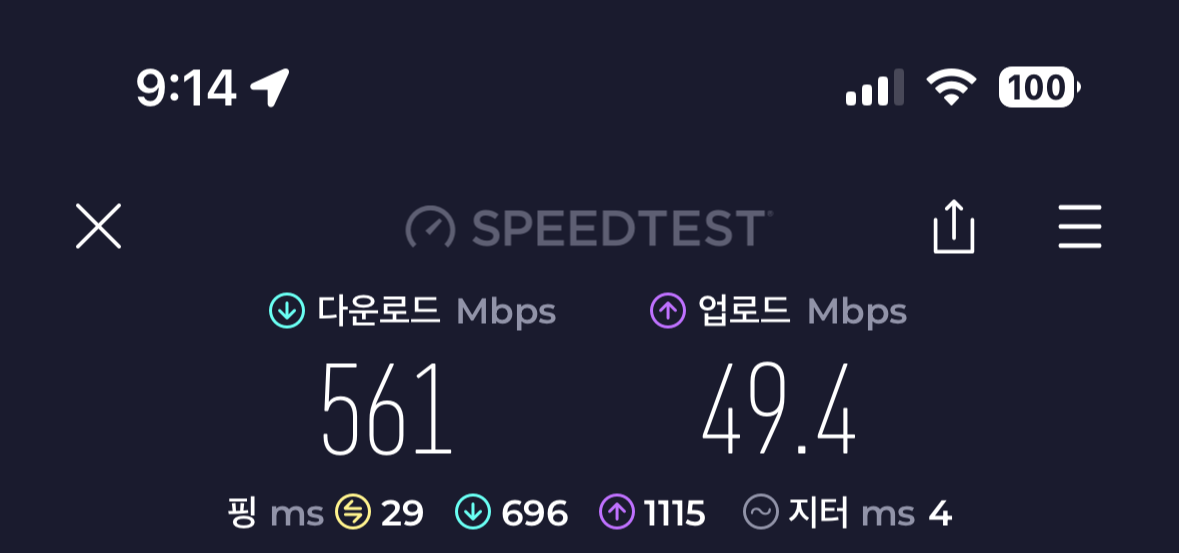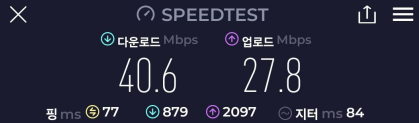 휴대폰의 핫스팟을 연결했었을때보다 훨씬 안정적이고