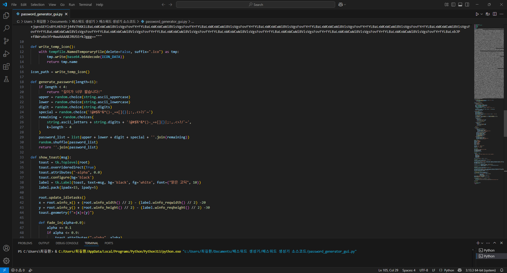 파이썬으로 개발한 프로그램이다 라는 표시가 났는데