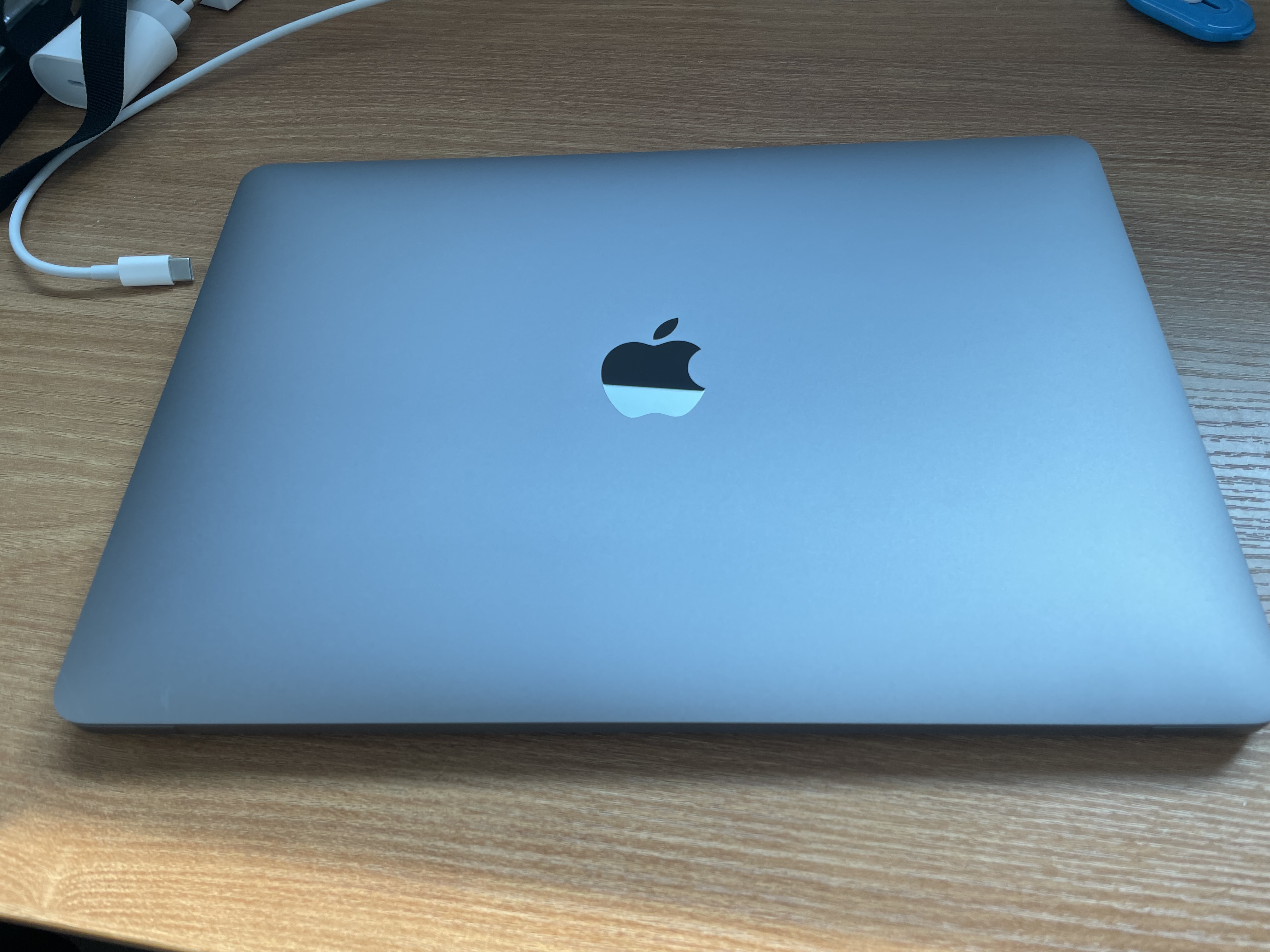 스페이스 그레이 색상에 맞게 애플 스티커가 있습니다.