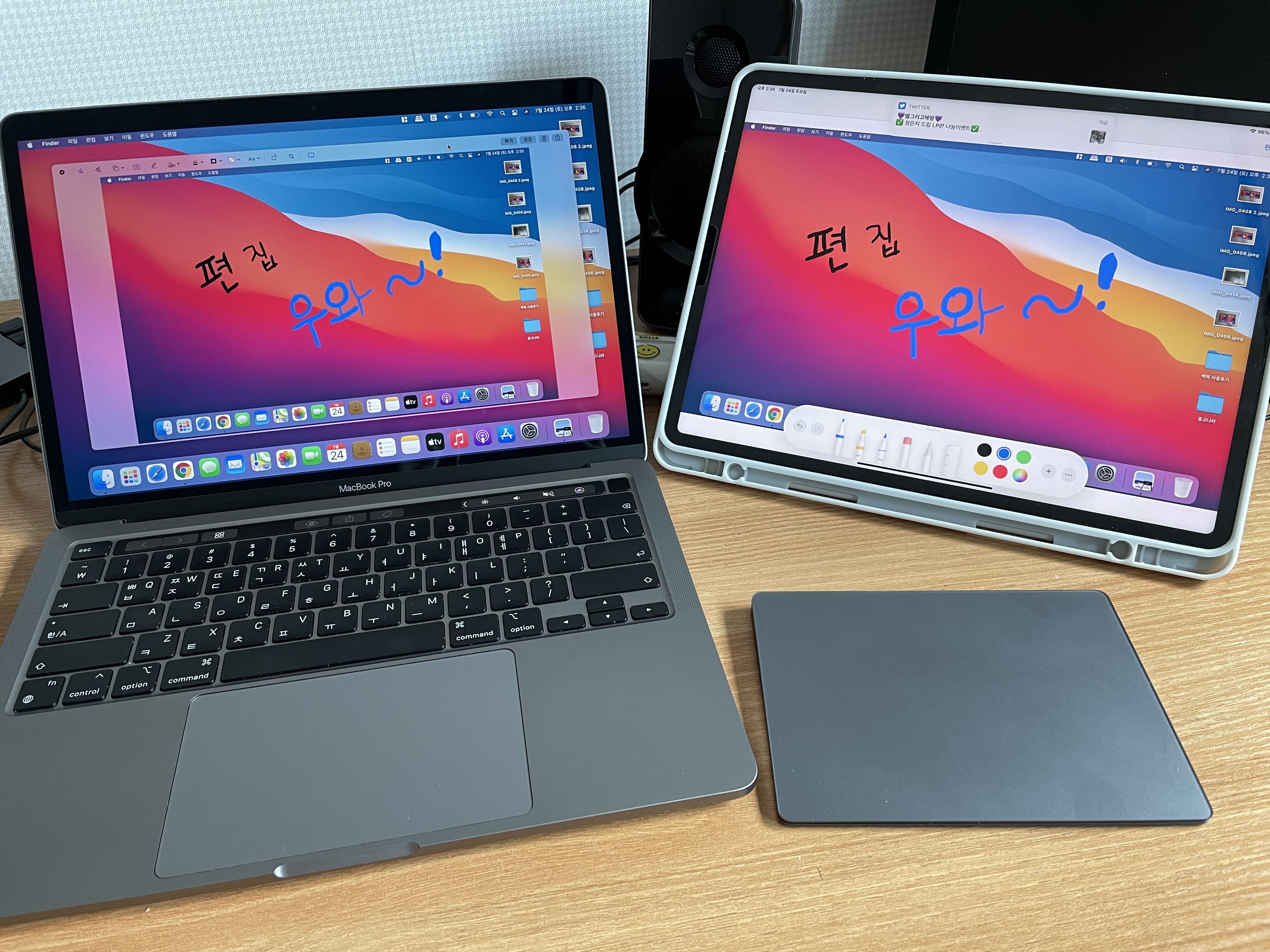 맥북 화면을 아이패드로 띄울 수가 있습니다.