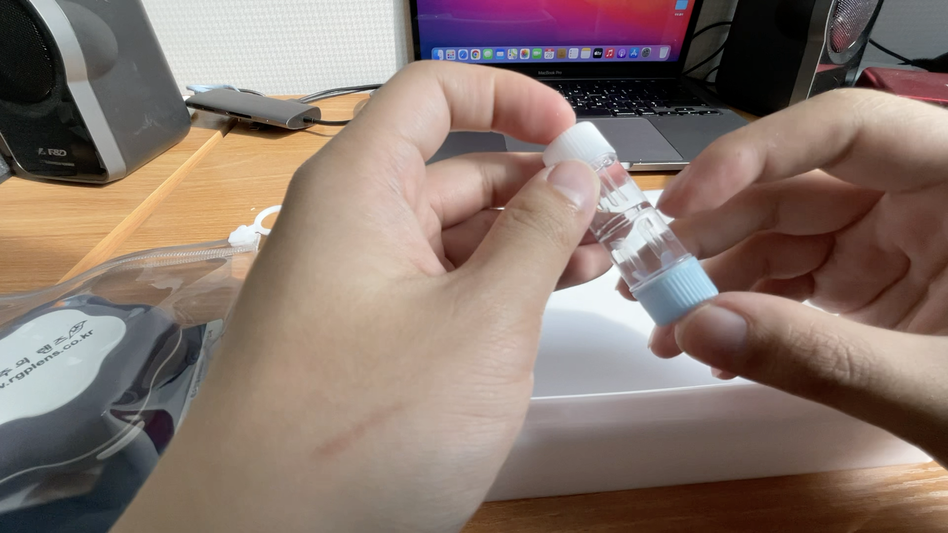 세척 후 손과 렌즈통을 잘 닦아줘야 합니다.