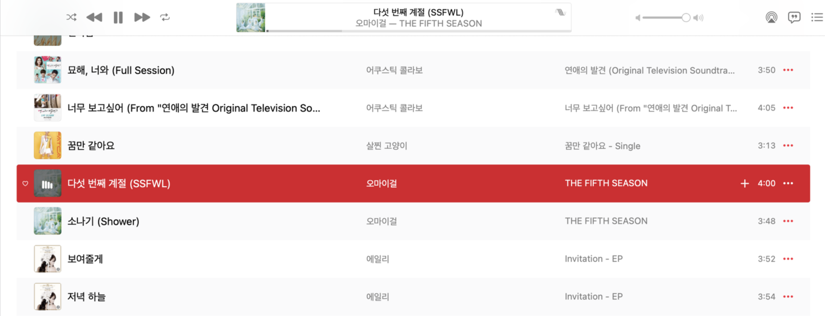 노래 제목을 한국어로 변경을 해주면 해결은 됩니다.