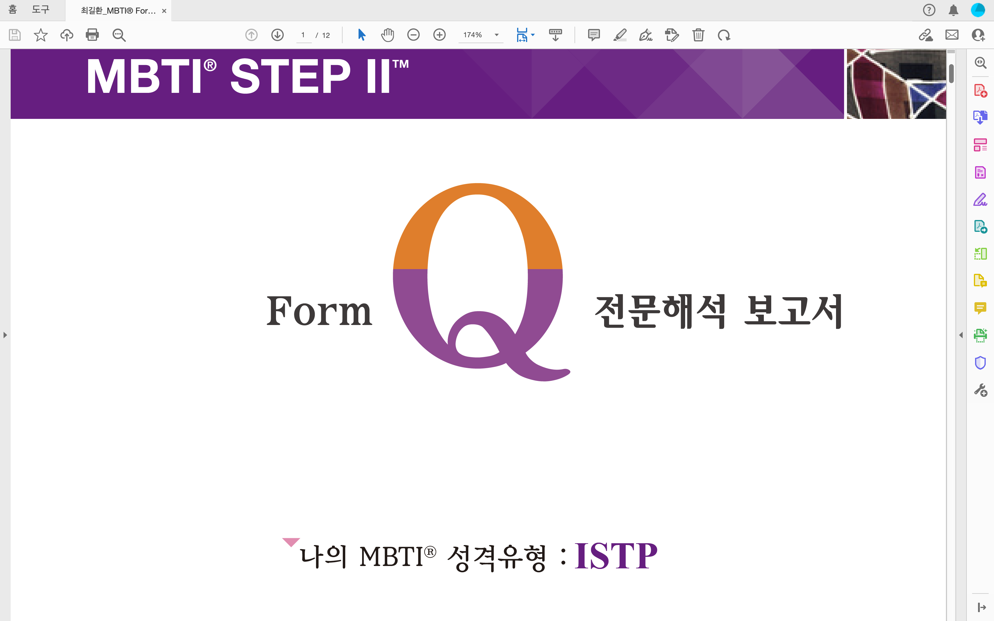 리얼 MBTI검사 MBTI Form Q 12P 검사를 받아 보았습니다.